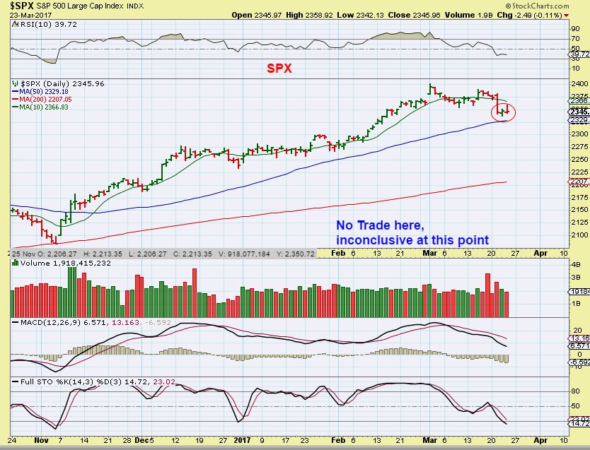 SPX – Even though a swing was put in place, I wouldn’t trade this long or short at this point. Thursday trade ran up under the 10sma, and sold off again. Also…