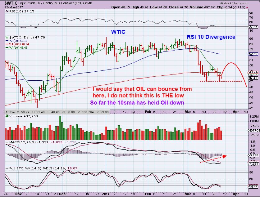 WTIC – Oil sold off a little bit and struggles at the 10sma ( $48.49). As mentioned, I’m expecting a drop into the lower 40’s, but shorting is difficult for me. I wanted to short the bounce, but I expected a back test to the 50sma. They havent made it THAT easy for me yet.