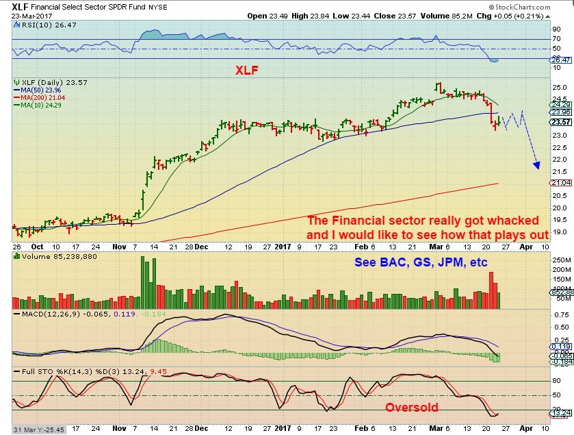 XLF – The Financial sector was concerning to me. It is oversold, but…