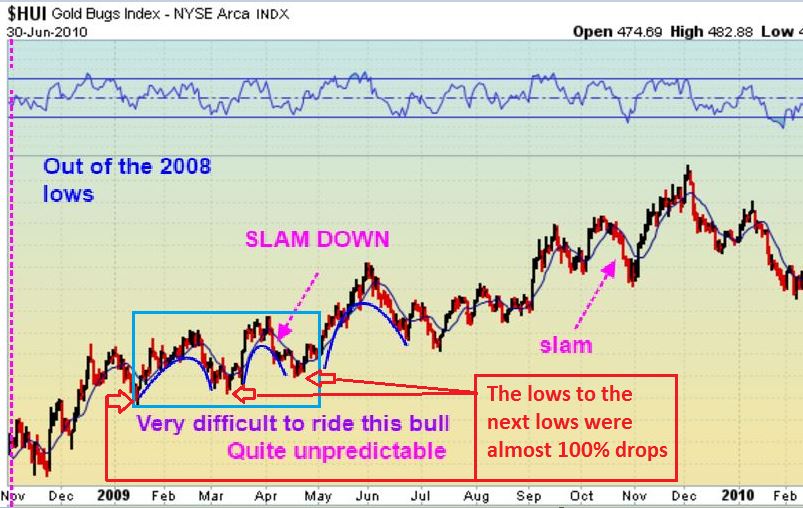 “I have found that during a BULL market, whenever the XAU Index closes below its 50 day MA by more than 10% simultaneously with a close below its 200 day MA by > 10%, a “low” of significance is close at hand (I know, I know, you’ve heard this tune before!). During the last secular advance from 2000-2008, the following dates were recorded where such a phenomenon materialized: