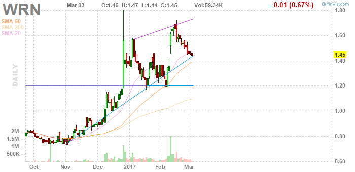 Recently I caught WRN near the low and also sold WRN correctly, just based on how it felt right near the top, and now it is almost at a new entry point.
