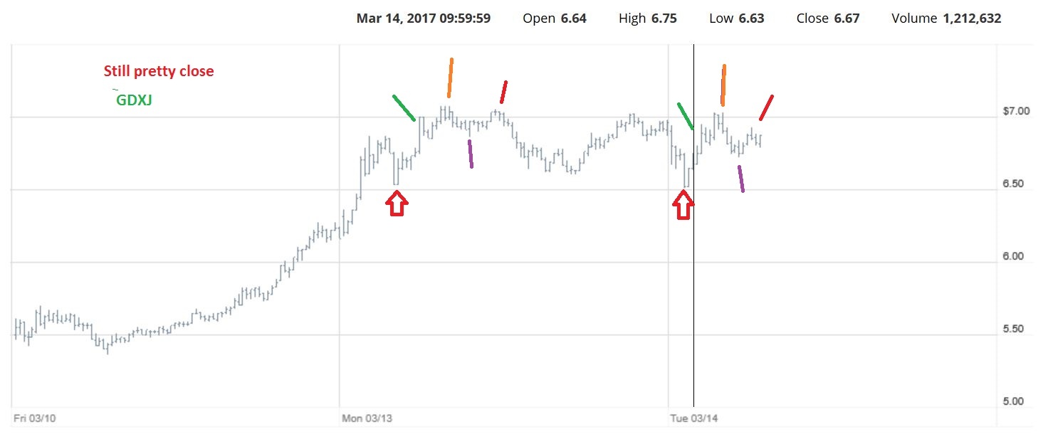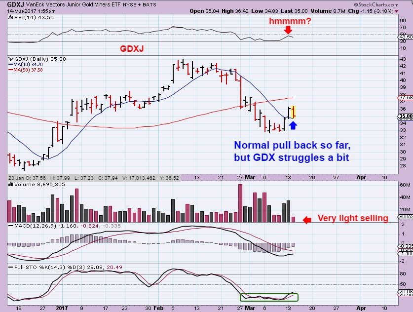 GDXJ looks ok so far , pretty light selling ( but that can change on Fed Day)