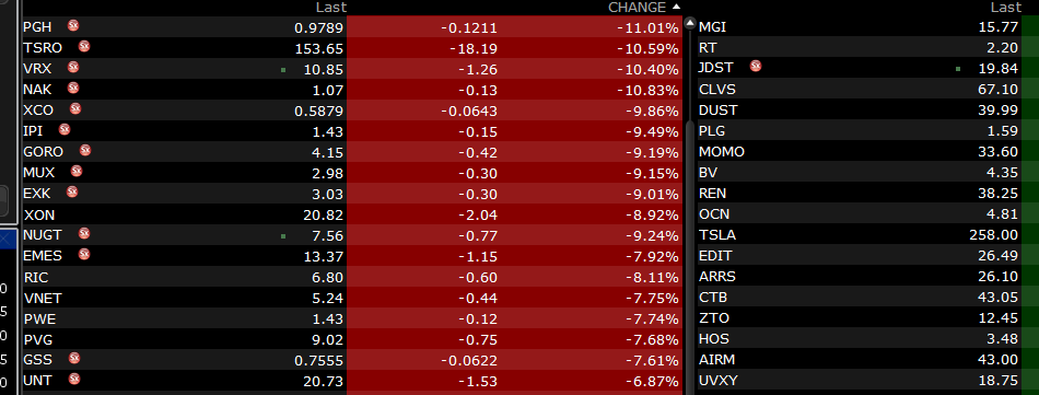 Man, the first day of Oil breakdown was a surprise so I was also waiting for a prooer retrace/bounce/entry and we didn’t get it. Shoulda just jumped in with Billy Bob. Energy stocks getting hammered today.