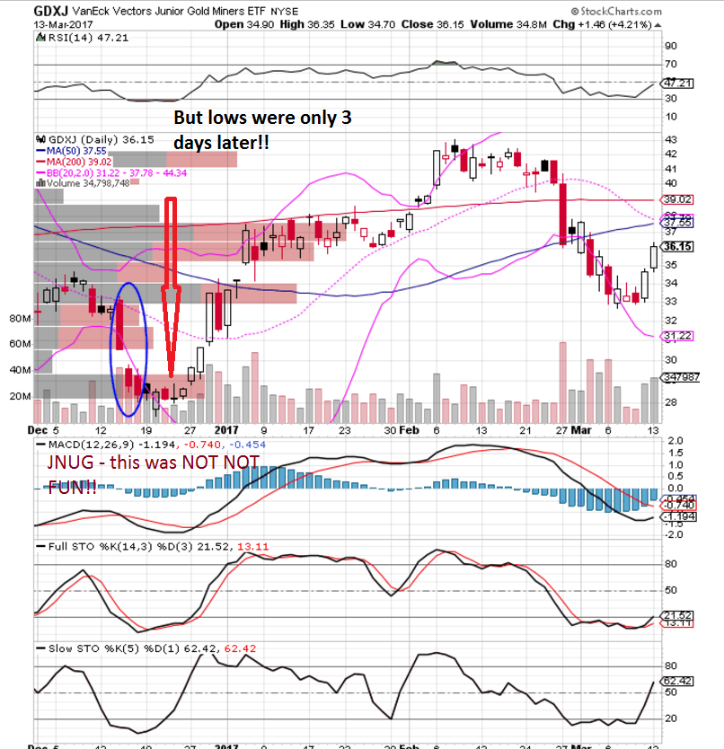Yes, I sold JNUG, albeit with a bit more ease than you did (man, that had to suck). And grabbed some hedges as well. If given the opportunity will actually add to JDST tomorrow. With miners this week and the Fed, GLD short, at least for 24 hours seems a no-brainer.
