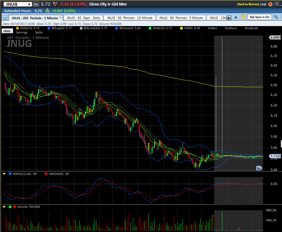 Good luck, bro. I’m letting the dust settle on FOMC tomorrow before I’m going JNUG. This bad boy could easily be on 20% sale before Friday! That just means more shares, same total price! 🙂