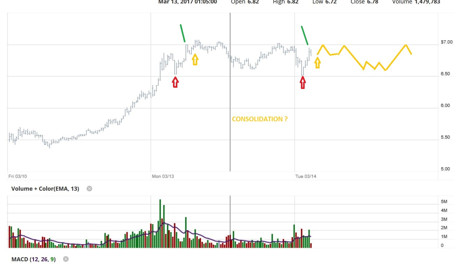 Hm, now I don’t see the 16:06 trade at all…it was there a minute ago….I was thinking maybe that person bought and then put a sell order in for $6.90 but cancelled the sell order…..hahaha….guess I could speculate all day long….:)
