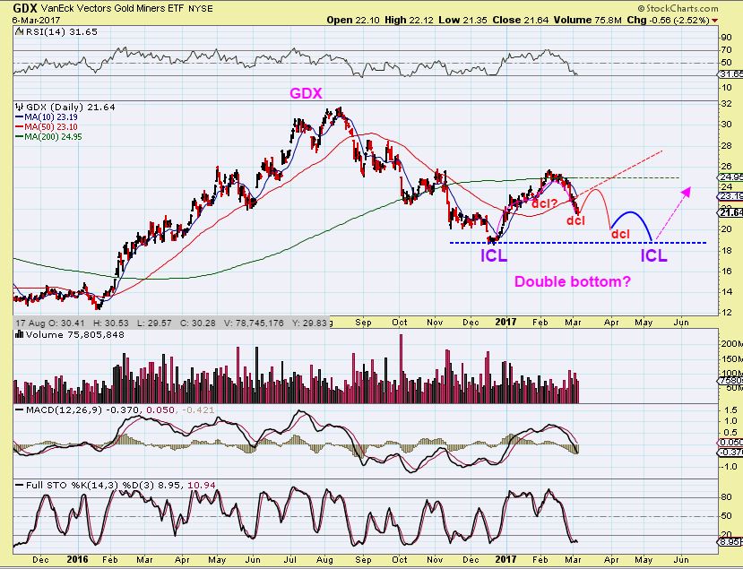 GDX MARCH 6 – About a month ago at the lows, I said that we shouldn’t get too attached to our Miners if we see a convincing bounce, because a back test of the 50sma is likely. That may be all we get. I drew this to help the readers here picture what we could be facing in the future.