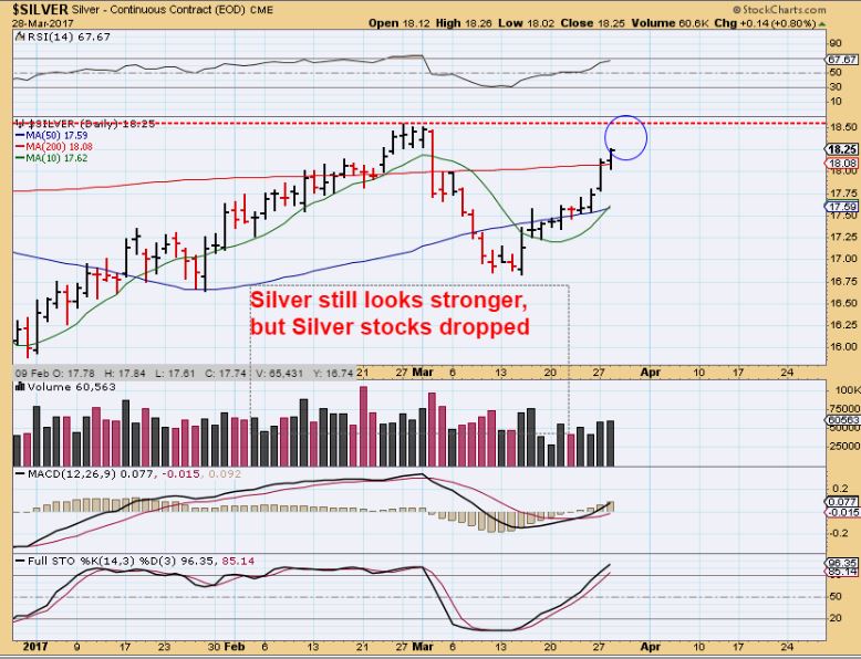 SILVER – I also said that silver looked stronger yesterday and it still does. It broke the 200sma and could do a double top if it keeps moving higher. Silver miners were NOT buying this move, so we’ll see what Wednesday brings.