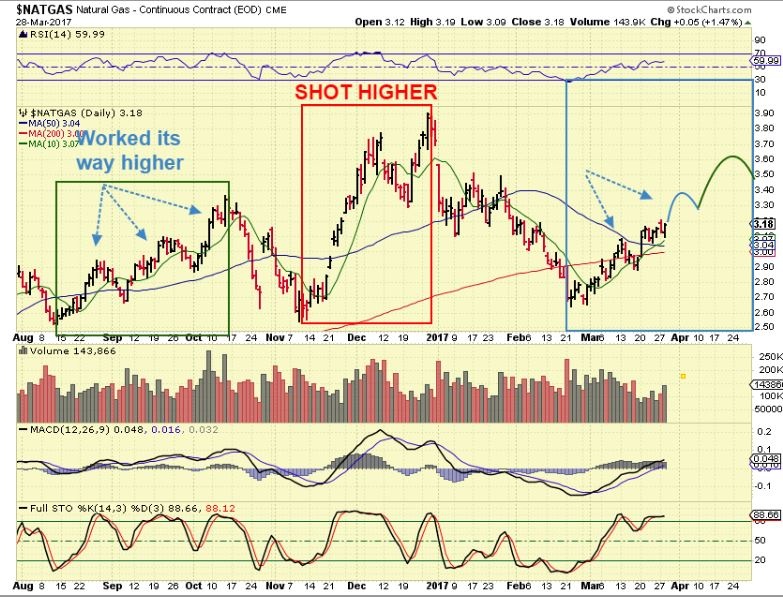 3. Look at the ramp up last November on the Bigger picture chart. NATGAS can run fast when it wants too, and there WAS resistance on the left of it , but it cut right through it