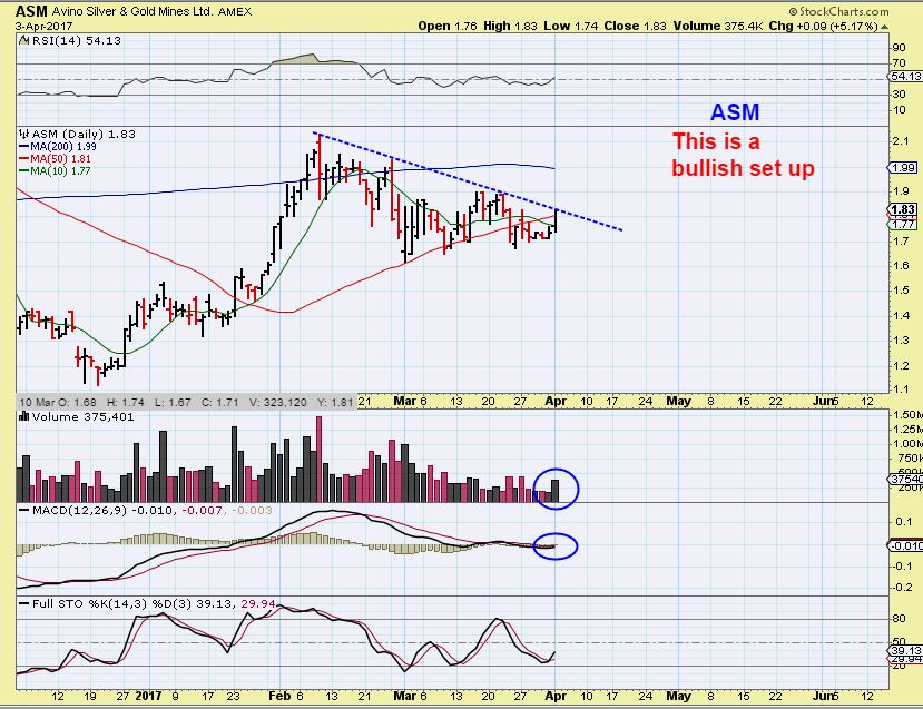 ASM also looks like it wants to break out, with volume swelling as it presses on a down trend line. So if we see individual Miners trying to break out, it could be a ‘tell’ that GDX or GDXJ may follow to the 200sma. It is a warning sign or a cautionary note for holders of Shorts of any kind.