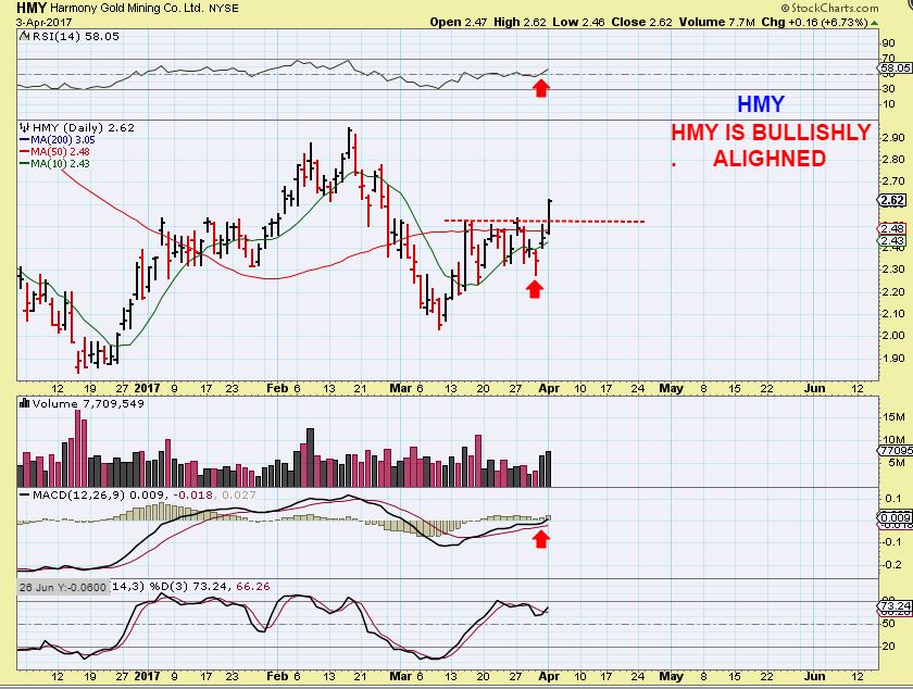 IS THIS A ‘TELL’? HMY looks exactly like the GDX chart to me, only it broke out with conviction Monday. Is this 1 day ahead of what GDX will do?