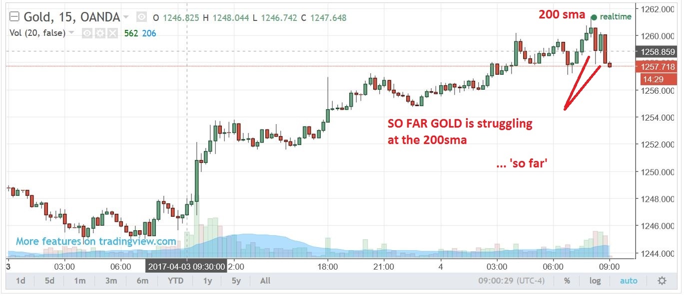 SO FAR ( REFRESH) Gold is struggling to get through that 200sma and hold price.