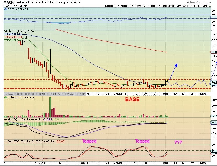 They’re all kind of tricky loose and wiggly – so it’s a tough call. MACK does look like it is set up at the top of the base to possibly break out and run soon, but it also an still just trade in a range ( range bound). I just bit the bullet and added yesterday inside of the base since my starting position was smaller than I wanted.