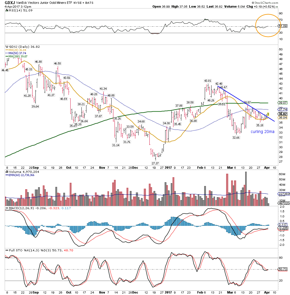 Gdx stronger than gdxj- right to the 50dma. I get to check out for the afternoon.