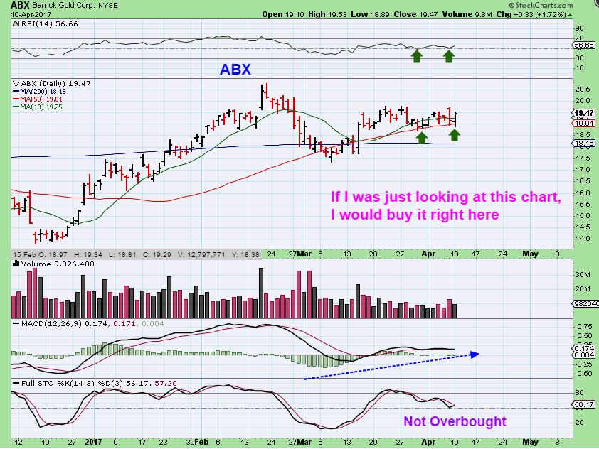 ABX – This also looks healthy, and I would probably even buy this right here if I were not thinking in terms of a daily cycle count. GG & ABX make GDX look like it could POP. So could it pop and still drop quickly after into a dcl?
