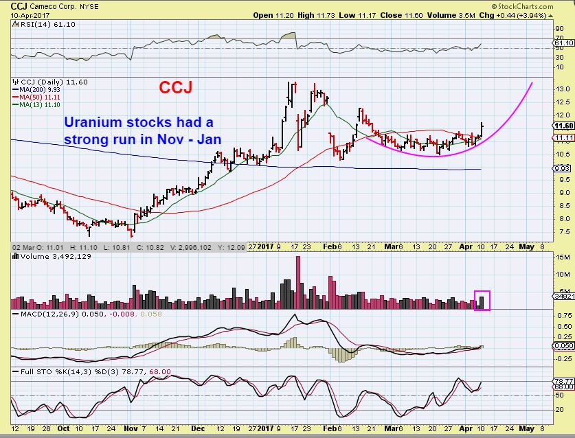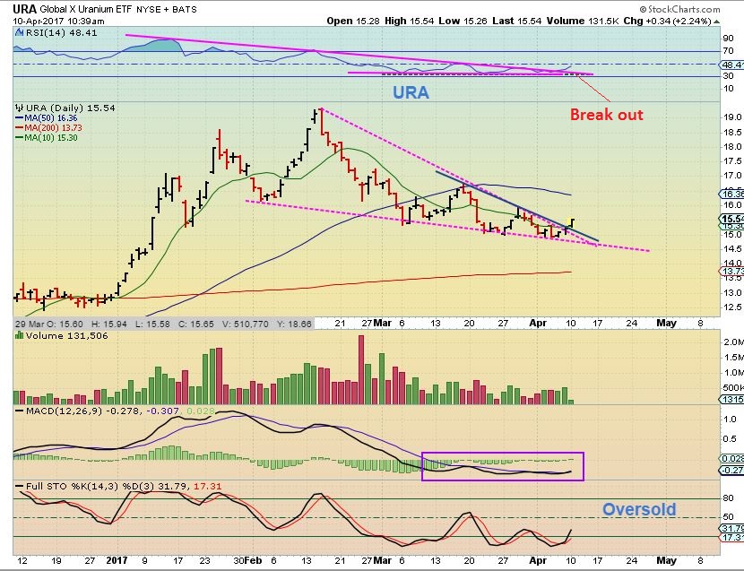 URA ETF AND URANIUM STOCKS- Uranium stocks ran very swiftly from Nov through Feb. I posted this in the comments section Monday morning and I bought URRE & UUUU. ALL of the Uranium stocks look bullish right now, so let’s look at a few…