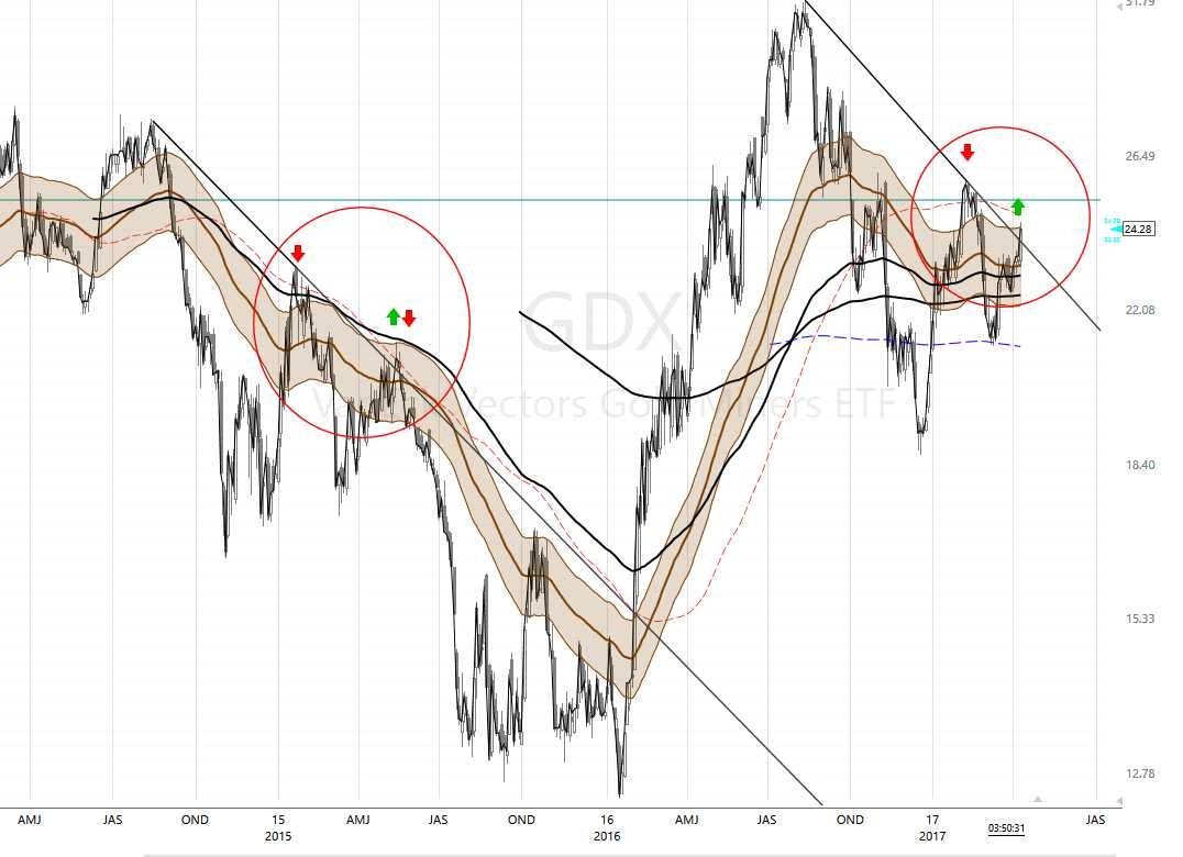 compare & contrast this 2day GDX chart channel & trendline break… 2015 versus 2017