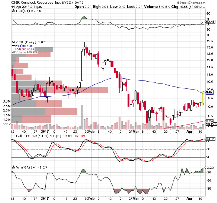 CRK is bumping up against the 50 day ma. I wouldn’t be surprised to see it consolidate there for several days.