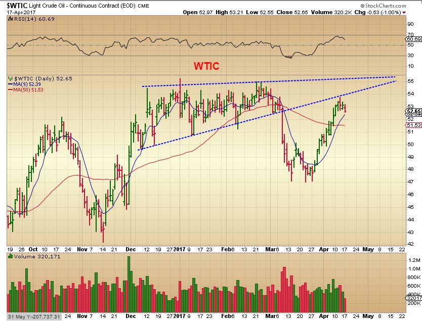 SO with precious metals, I think that the “Time” is just about up for this Intermediate run.  GOLD wants to tag that $1300 area, we’ll see if it can do that.   Cycle Timing dictates that a DCL is due and we are also getting into the timing for an ICL, a deeper sentiment changing low. I’m still holding a position short the GDXJ, and with the stories that everyone has been talking about, maybe the drop will be caused  by a little panic selling, leading to a drop deeper than anticipated.   The General markets are due for an ICL, but the recent DCL may hold and we may get a good bounce before it rolls over.  Could the indicators be indicating that the recent DCL was really an ICL?  I just don’t think that it fits the criteria, but if the markets were going to go parabolic in 2017, the dips would become more and more shallow.   I dismiss this idea at this time due to the lack of recovery in the XLF, but will continue to monitor all things.    We have plenty of time to see how this plays out,  but anyone wanting to buy a recovery of the 50sma can put a stop under it as a low risk long attempt too.  The choice is yours.