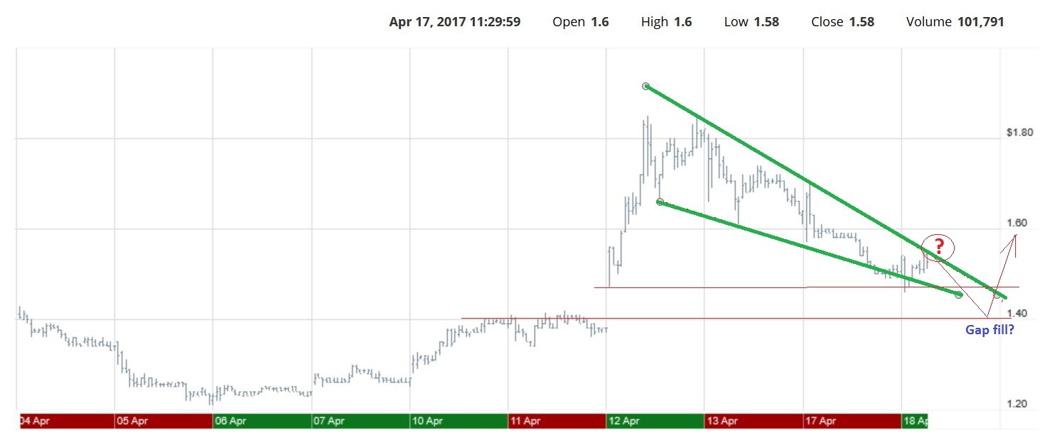 NAK tried to fill the gap today and ( SO FAR) Bounced off of the top of it, the 10sma on a daily chart.