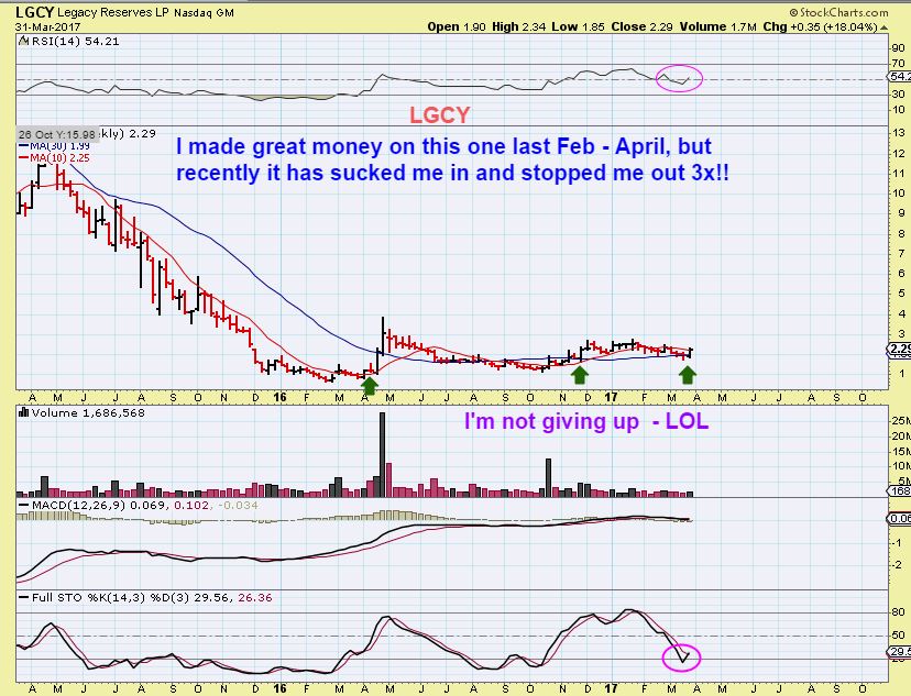 SWN – I got too cute and took profit at the tag of the 50sma. I was trying to trade around a dip off of the 50sma, and then buy the dip. When it dipped, it looked as though something may be wrong, so I waited to buy it and then reversed and surged higher without me. This chart looks great. That 1 day dip was not enough for me to enter comfortably, but he weekly chart still looks excellent and this will probably be much higher over time.