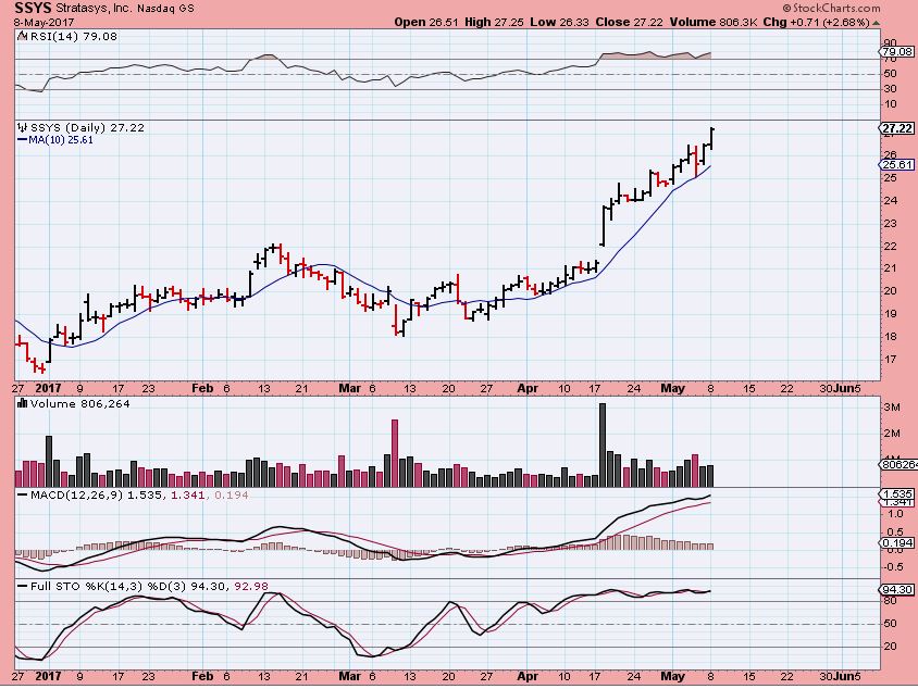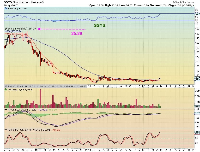 SSYS MAY 8 $27+ – Follow through and that chart above shows a huge upside potential.