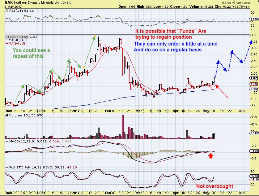 NAK #2 – Please read the chart. Funds were buying NAK, and then likely sold out on the way down. Are they interested again with the new EPA set up?