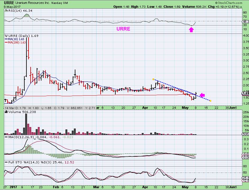 URRE (And some other Uranium stocks) look to be breaking higher. URRE re-gained the 200sma and is worth a buy here with a stop below recent lows or a tight one below the 200sma.