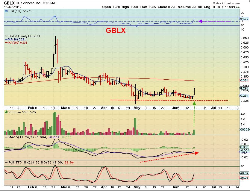 GBLX – Another POP out of a double bottom base, GBLX was up 16% on Friday.