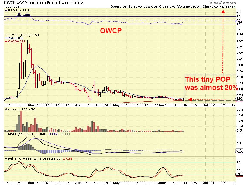 Let me start by saying that this next sector that I am going to discuss again is not for everyone, but I know that plenty of my readers have shown an interest in this sector. I did a write up last December on this sector  ( The Link is below) , you can reference that article for more names to follow too.  These can move VERY quickly, so position size is important.  Some of the gains are 20% – 50 % in a day , even 100% at times, but it also can drop 20% , 30% , etc,  SO CAUTION AND BEING REASONABLE is the key.   With the legal system accepting the use of Medicinal Marijuana ( And recreational use in some areas),  this sector is likely poised to grow in a big way over time, but some of these companies also may just go away.  Personally I have accumulated 2 positions in a buy & hold and see where they are in 10 years type of investment.  I also traded a few last year, like  CNBX, CANN, OWCP .  Again,  they move FAST in both directions, keep position size reasonable if you are considering this sector.  Reviewing my December article below may give you a few more names to add to your list.   I would just Skip it for now and continue with this report.