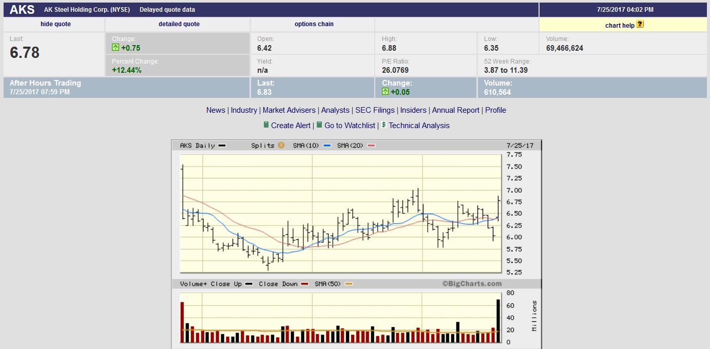 AKS released earnings a day after everyone seemed to bail out on it. AKS dropped hard on Monday, and then Tuesdays earnings pushed it right back up over the 50sma. AKS was up 12.44% on Tuesday with big volume. This should now continue to run higher out of this base.