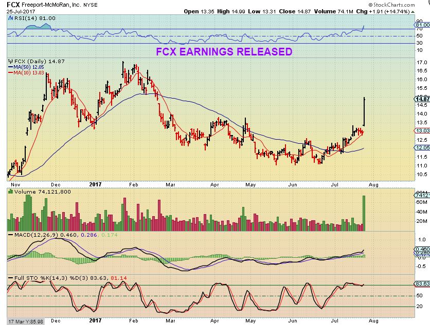 FCX – Earnings certainly didn’t hurt FCX, it was up 14.75% in addition to the recent run up from $11 to $13.