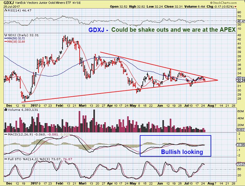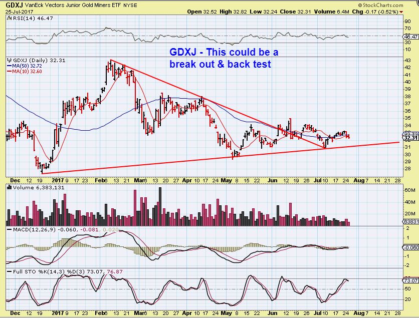 Or … ‘Is this the triangle for GDXJ?’ The answer is, It doesn’t matter 🙂 This is going to break one way or the other with this FOMC meeting, and I tend to think that like commodities, Miners are going higher. Let’s look at Gold.