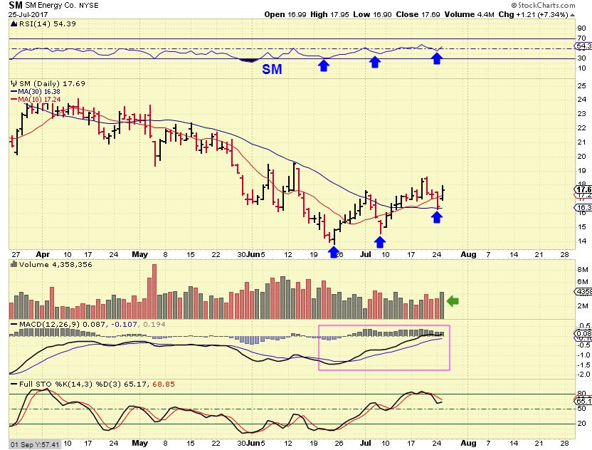 SM – I am now finding more Oil & Energy stocks acting correctly above that 50sma