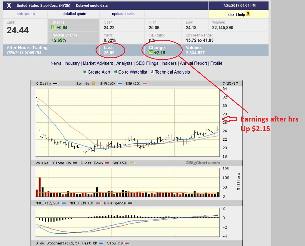 X released earnings after the bell last night, and this chart shows the after hr move. Up $2.15 and price would open at $26.59 Wednesday if this stays as is. These are becoming buy & hold candidates if you prefer that style. This could have been bought & held from May onward.