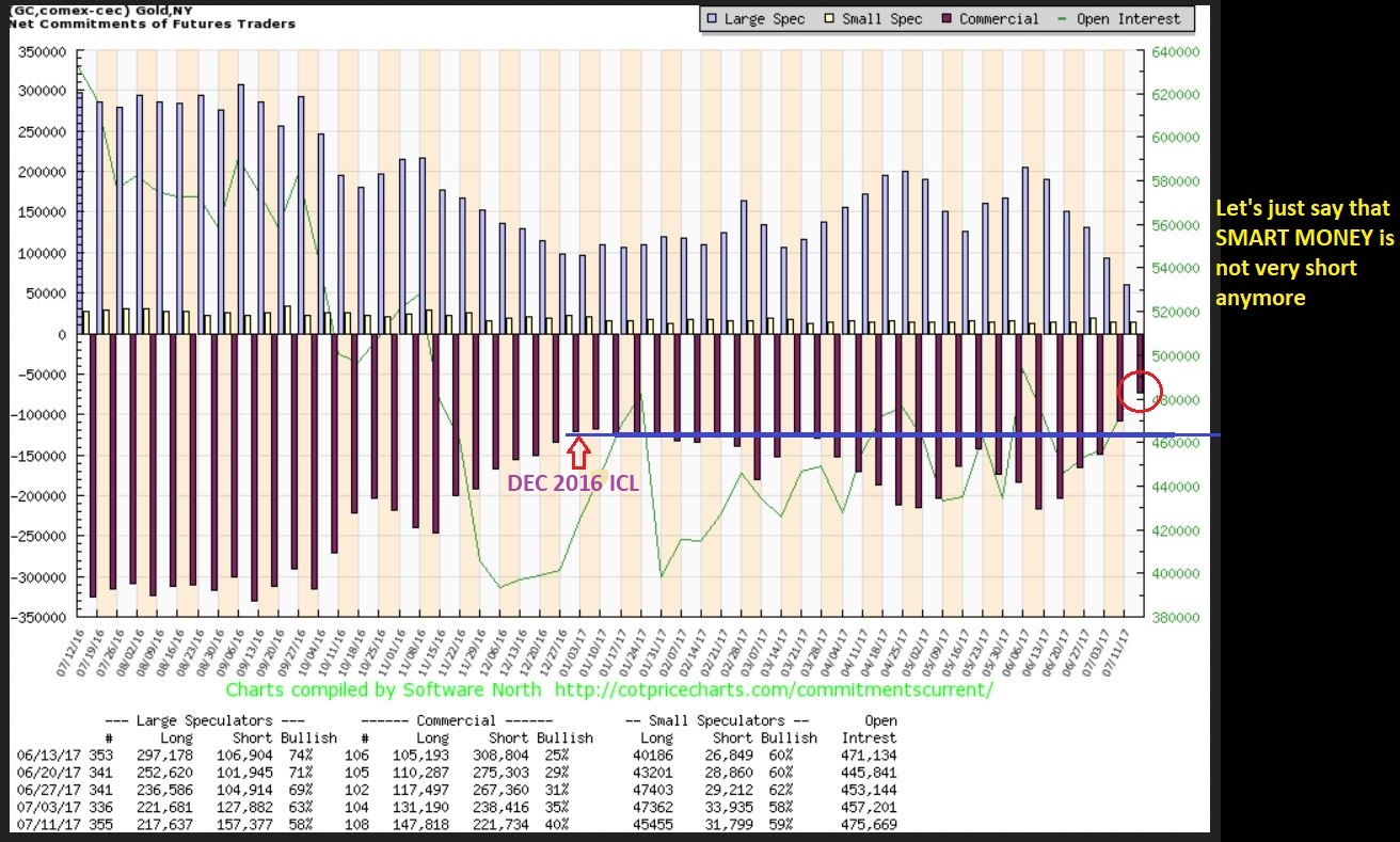 As a reminder, Last week I pointed out that the Smart Money short positions had been extremely low at the ICL of Dec 2015. So I do not use current COT readings as a solid sign of an ICL, but it is definitely encouraging and Bullish ( Especially when it is below last Dec 2016 ICL levels). Again, we may have an ICL in place, and I did a report last week pointing out that many Miners are already coming out of lows nicely.