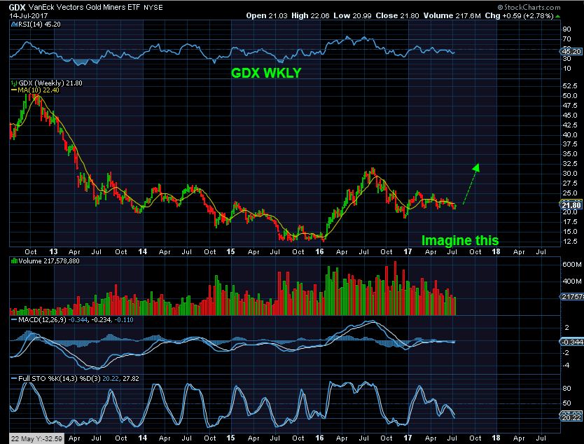 GDX WKLY – PLEASE LOOK AT THE SIZE OF THE MOVE FROM LAST WEEK ON GDX ( SEE THE CHART) . NO ONE HAS ‘MISSED THE MOVE” in MINERS. The next run will be very profitable.