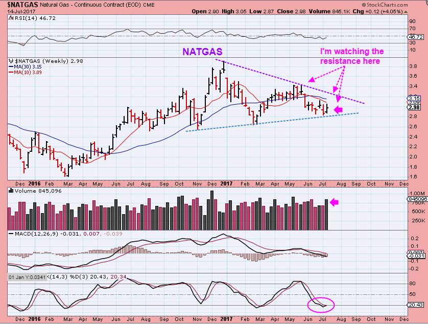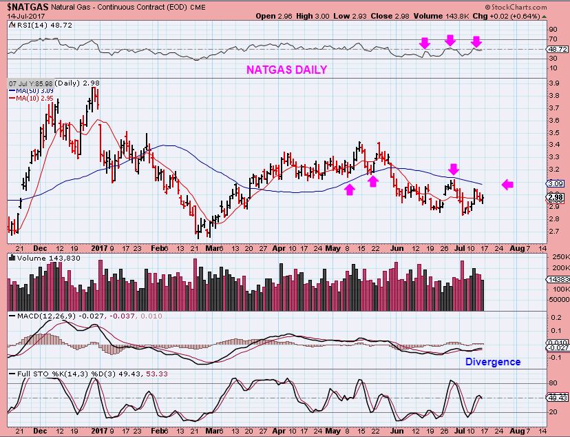 NATGAS DAILY – The WEEKLY chart is nearing a conclusion. We did have a stronger volume week higher so far and it is oversold.