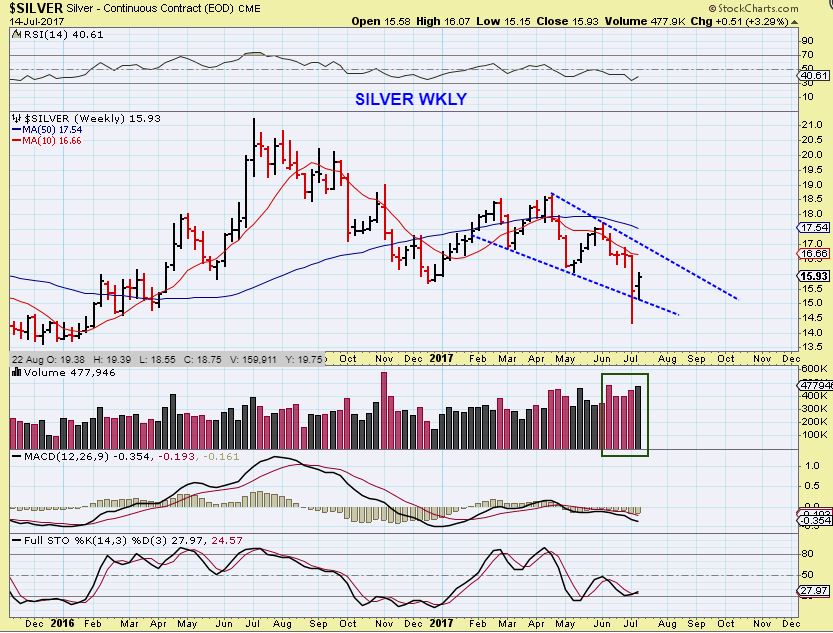 SILVER WEEKLY- Silver is a tad behind Gold, but it recovered from that flash crash and closed near last weeks highs.