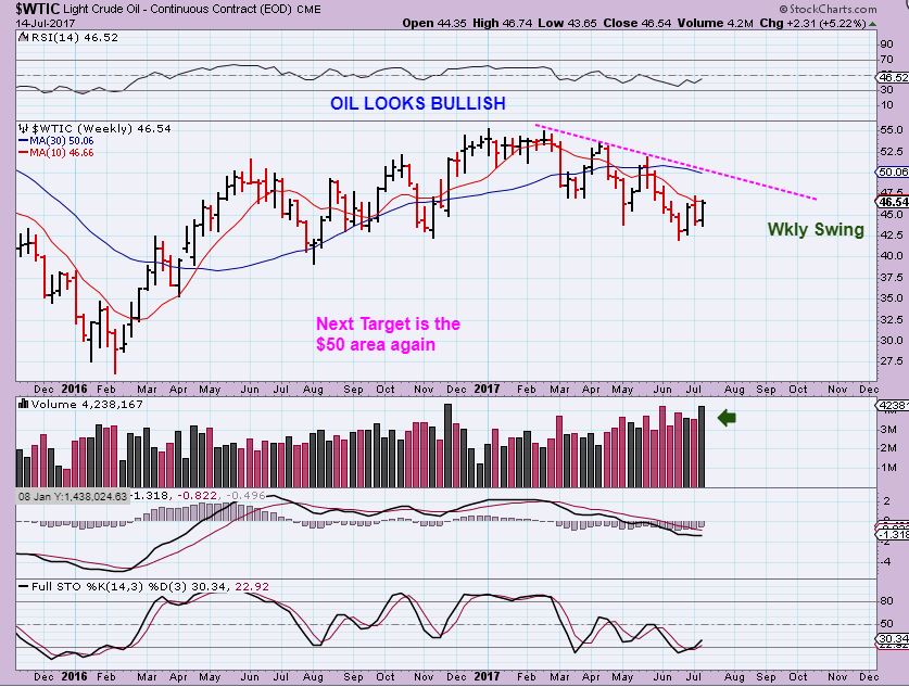 OIL WEEKLY – I have been saying that OILs low 3 weeks ago looked real. It has proven to at least be a dcl, but many energy stocks are still not quite following along, so the ICL could still be ahead. The ones that I have been tracking as possible leaders do remain healthy however ( ERF, RES, AREX, etc).