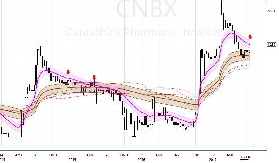 Check out CNBX on a weekly chart with the 10 & 50sma. I know you were stalking it on a daily – both look very good.