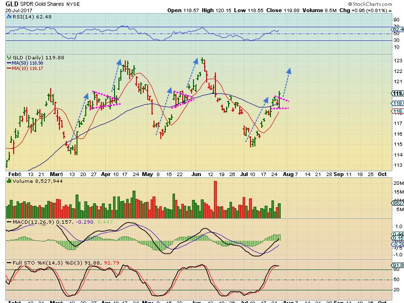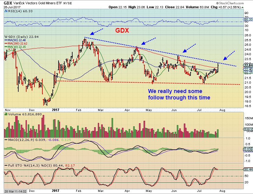 4.  We have been watching  GDX & GDXJ  making higher lows inside of triangle formations.