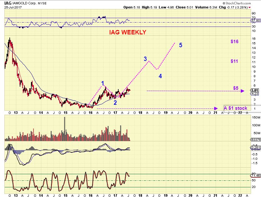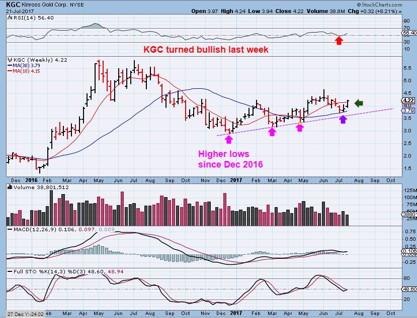 KGC WEEKLY –  This was in a report last weeks & yesterday, pointing out higher lows as a bullish  weekly view.
