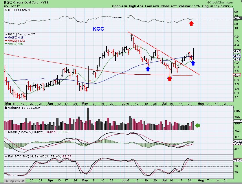 KGC – Inverse H&S breaking higher above the 50sma after landing on the 10sma.