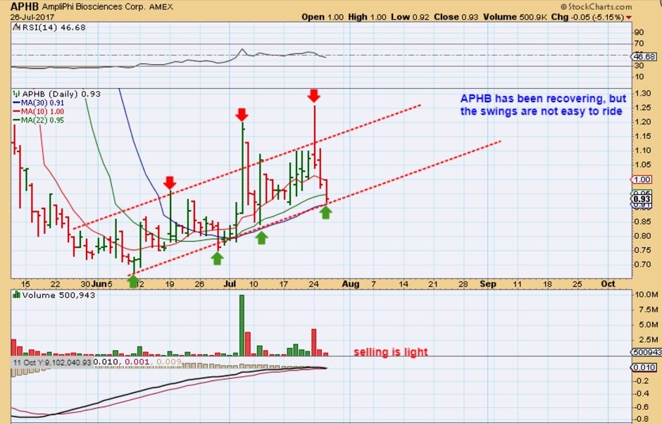 Should you cut it & put the money elsewhere? I have done that plenty of times, and at times that works out well. Is APHB bearish looking or bullish looking? 6 month chart – It looks like a stock that got thrown out with the trash & is recovering, short term chart is a mini uptrend, so it could be semi bullish if it recovers, but being biotech? IT could do anything. So you have to weigh the facts and make that decision as to where you think your money would best serve you.