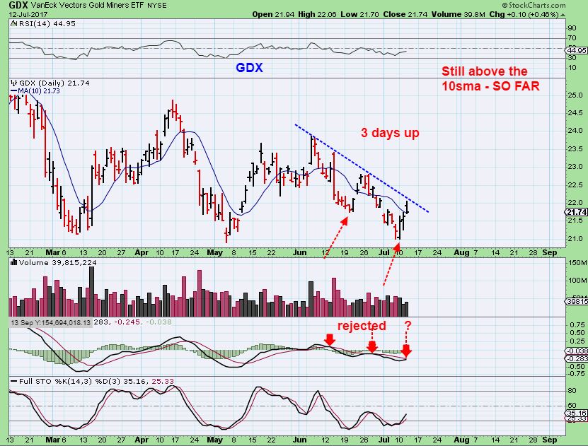 GDX – Gapped over the 10sma on Wednesday and then filled that gap.