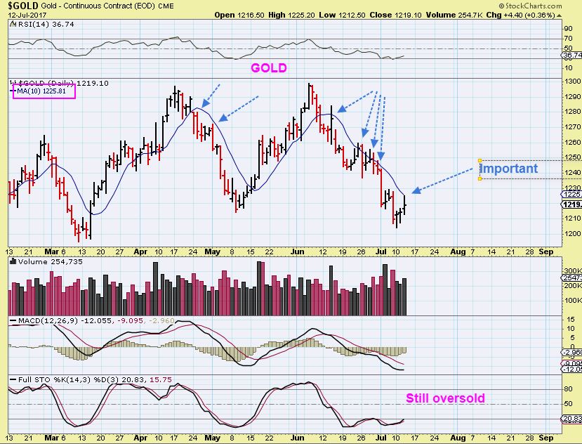 GOLD – The 10sma is important, so I am watching that this week.