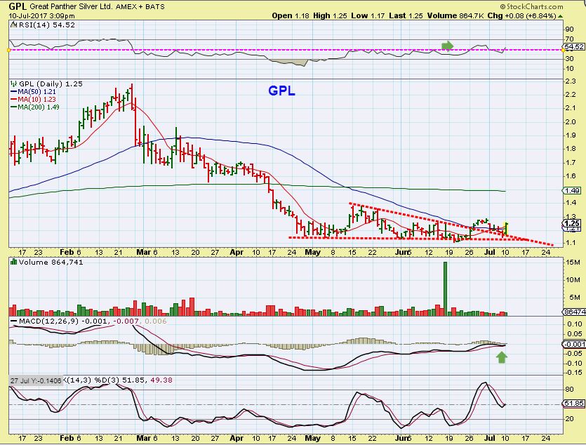 GPL – For example, I used this chart of GPL to show that Miners did not sell off with Gold and Silver in June.
