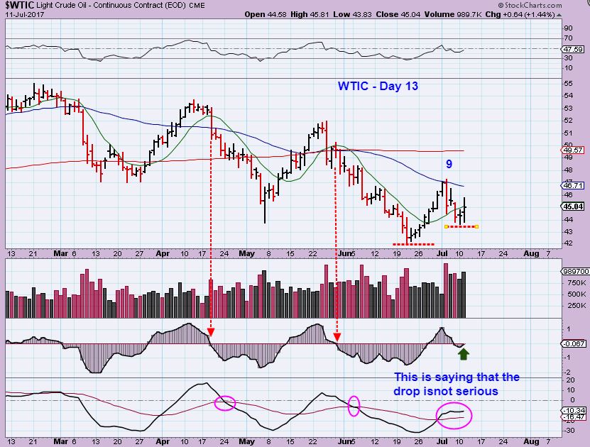 GOLD – Gold was rejected on day 3 in May at the lows, tagging it and selling off into the close. The 10sma was then broken on day 4. Right now we are possibly on day 3 too, that is why I held on to my miners, PLUS they didn’t sell off in June with Gold & Silver, so I feel I have a little time.