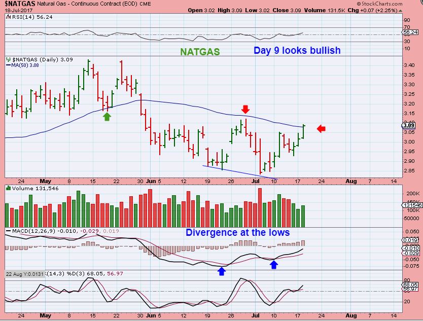 NATGAS – NATGAS is still moving higher after the ‘High volume, capitulation type, slam down low’.  Now on day 9 , This chart actually looks more bullish after attempting this break out on Tuesday.